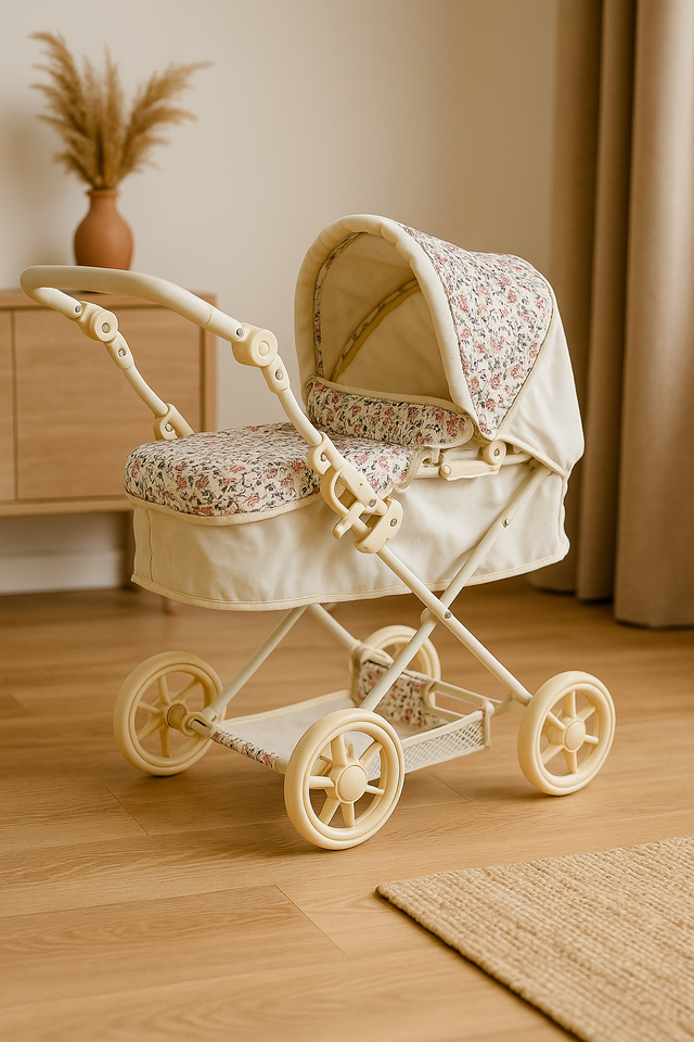 Ця класична коляска — чудовий вибір для маленьких батьків, які люблять грати в догляд за ляльками. Вона поєднує комфорт, функціональність і стильний дизайн, що надихає на сюжетно-рольові ігри.
