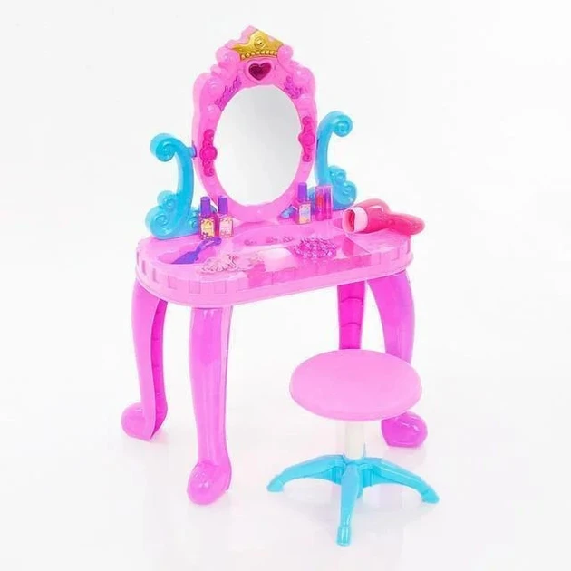 Ігрове трюмо від LIMO TOY — це чарівний набір для сюжетної гри у салон краси або ранкові збори. Столик обладнаний дзеркалом, поличками та яскравими аксесуарами, що допомагають дитині розвивати уяву, дрібну моторику та відчуття стилю.