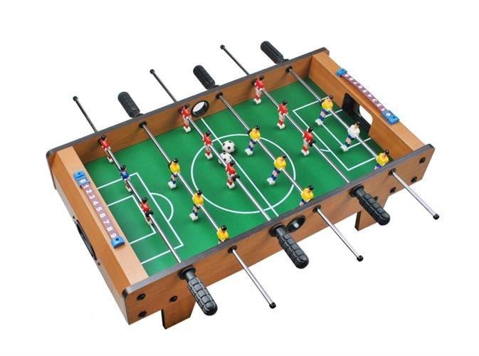 Ця компактна модель настільного футболу виконана в класичному стилі з корпусом із натурального дерева, що додає грі затишку та естетики. Ігрове поле оснащене фігурками футболістів, закріпленими на металевих штангах з зручними ручками. Ідеально підходить для домашніх турнірів, веселих вечорів і активного дозвілля.