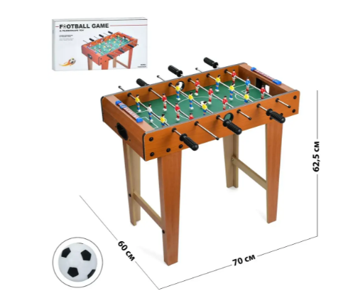 Ця модель поєднує класичний формат настільного футболу з зручною конструкцією та стильним дерев’яним корпусом. Ігрове поле імітує футбольну арену, а фігурки гравців закріплені на металевих штангах з ергономічними ручками. Розміри столу дозволяють комфортно грати як дітям, так і дорослим.
